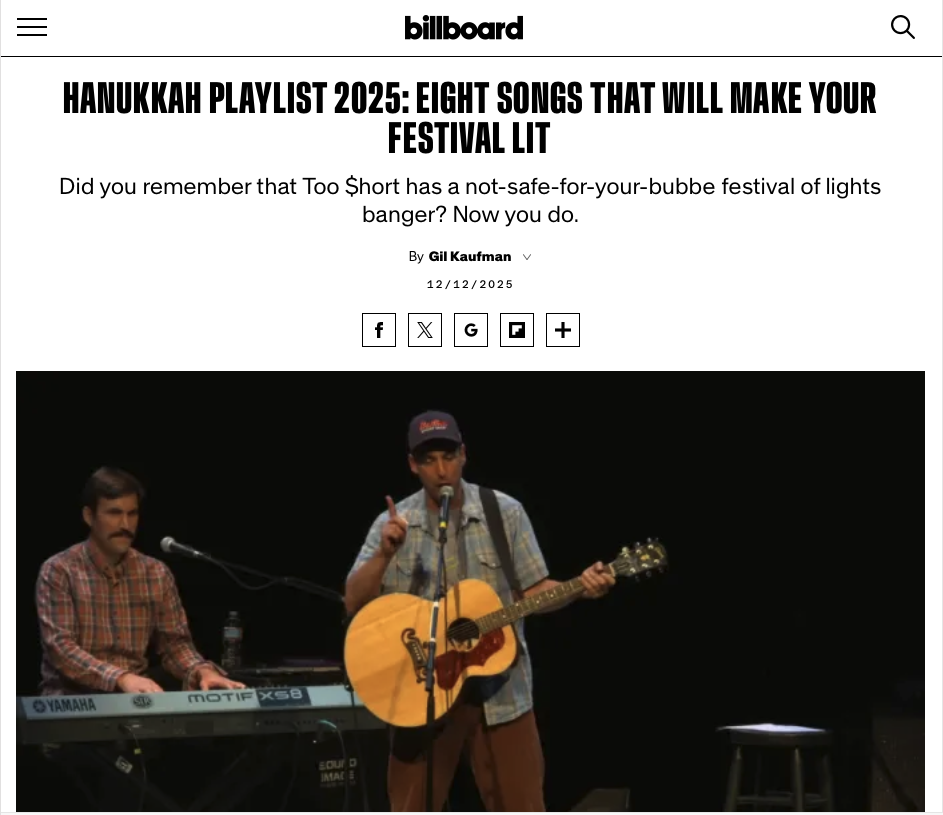 Billboard Magazines Hannukah Playlist 2025