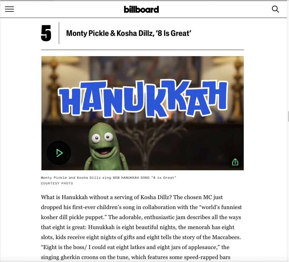 8 is Great picked as #5 most popular Hanukkah songs!